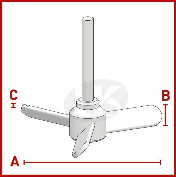Stirrer Shaft PTFE Maxi Propeller ¥Õ10 x L450 mm, 140 x 20 x 4 mm