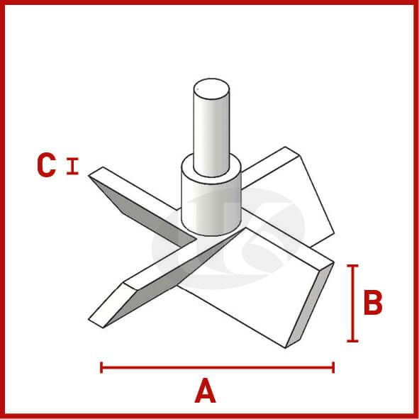 Stirrer Shaft PTFE Propeller Type ¥Õ10 x L600 mm, 100 x 20 x 5 mm