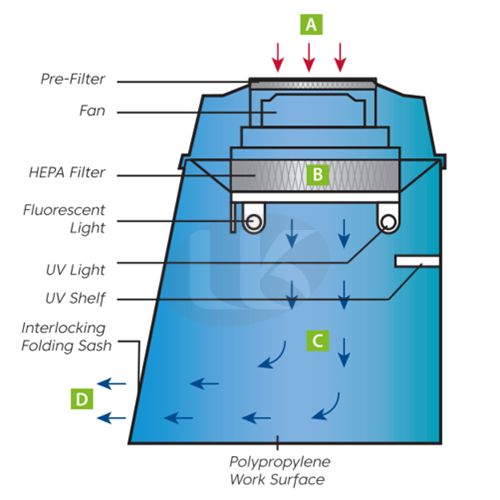¡á Vertical Laminar Flow, HEPA Filter (Class 100)