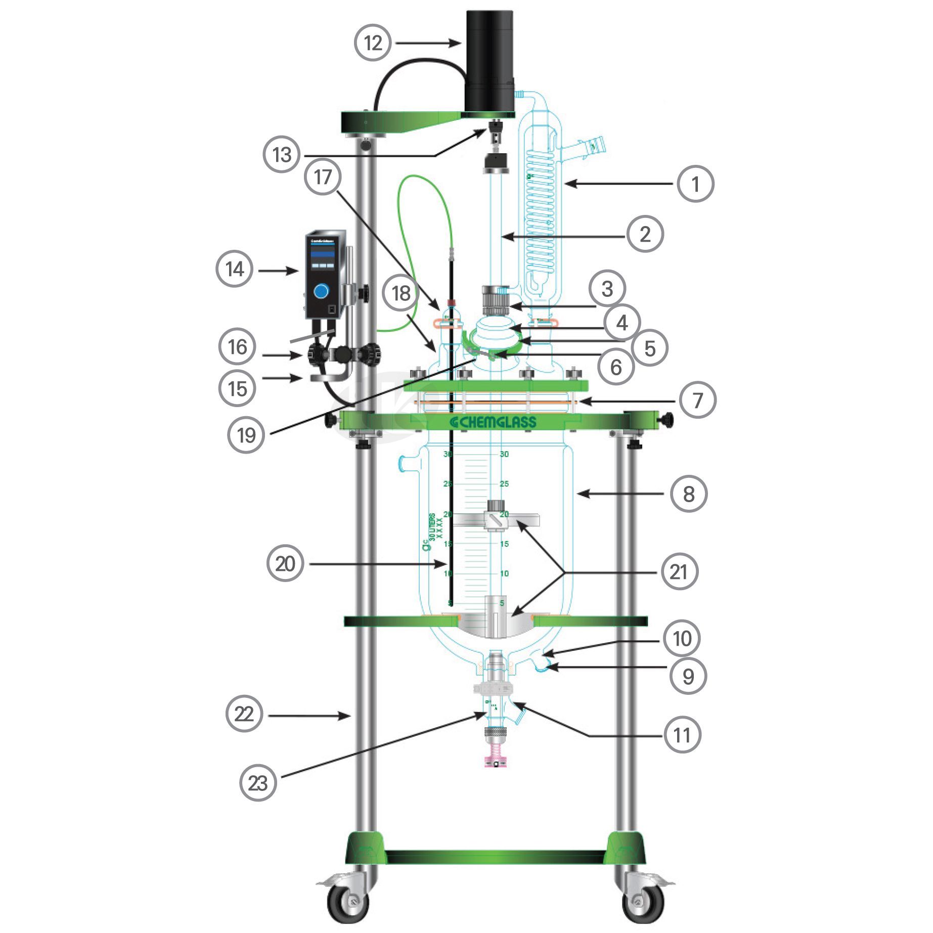 Process Vessel, Jacketed 30 Lit., I.D. 300mm h628mm